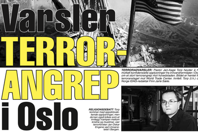 Tekst: Gordon Andersen, Bergens-Avisen Pastor Jan-Aage Torp hevder gjennom Sæle-avisen Norge IDAG at det planlegges et terrorangrep mot Oslo. Terroreksperter kaller opplysningene...